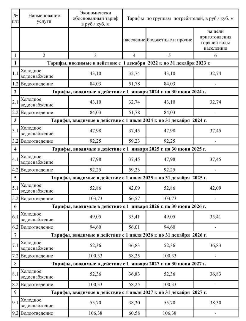 О тарифах - Рыльские коммунальные сети